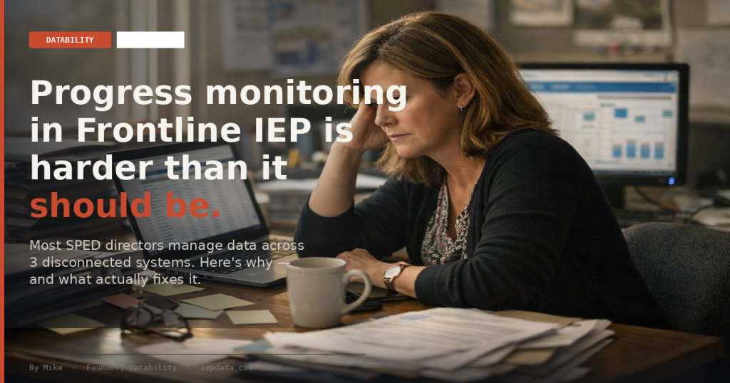 Progress Monitoring in Frontline IEP Is Harder Than It Should Be | Datability Datability · IEP Data Management for Frontline Districts Book a Free Demo Pain Point Frontline IEP 4 min read Progress Monitoring in Frontline IEP Is Harder Than It Should Be Most SPED directors are managing IEP progress data across multiple disconnected systems. […]